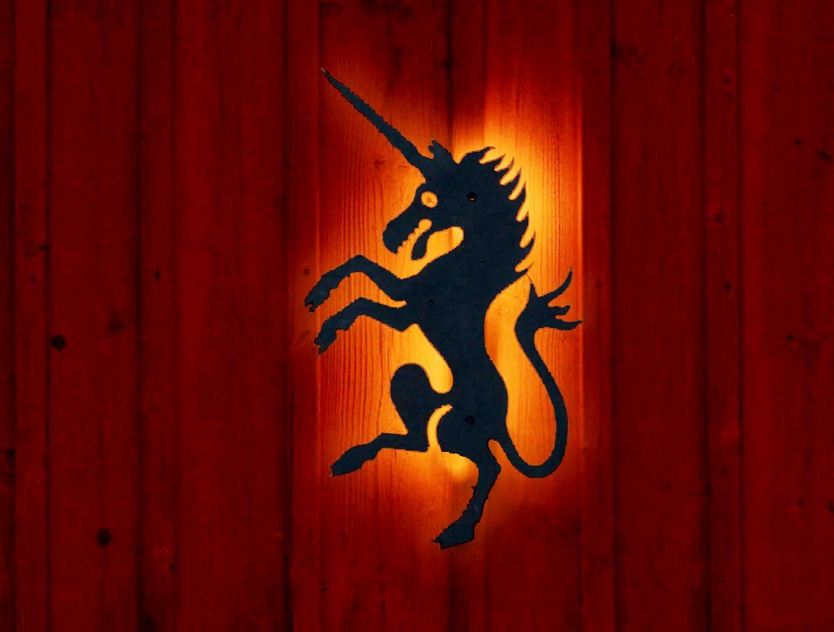 Enhörning som väggdekoration är gjord efter den ursprungliga enhörningen ritad speciellt för Överenhörna Bygdegård när den byggdes 1938.