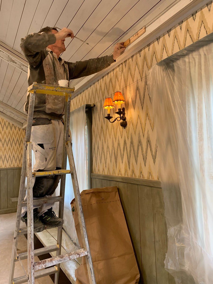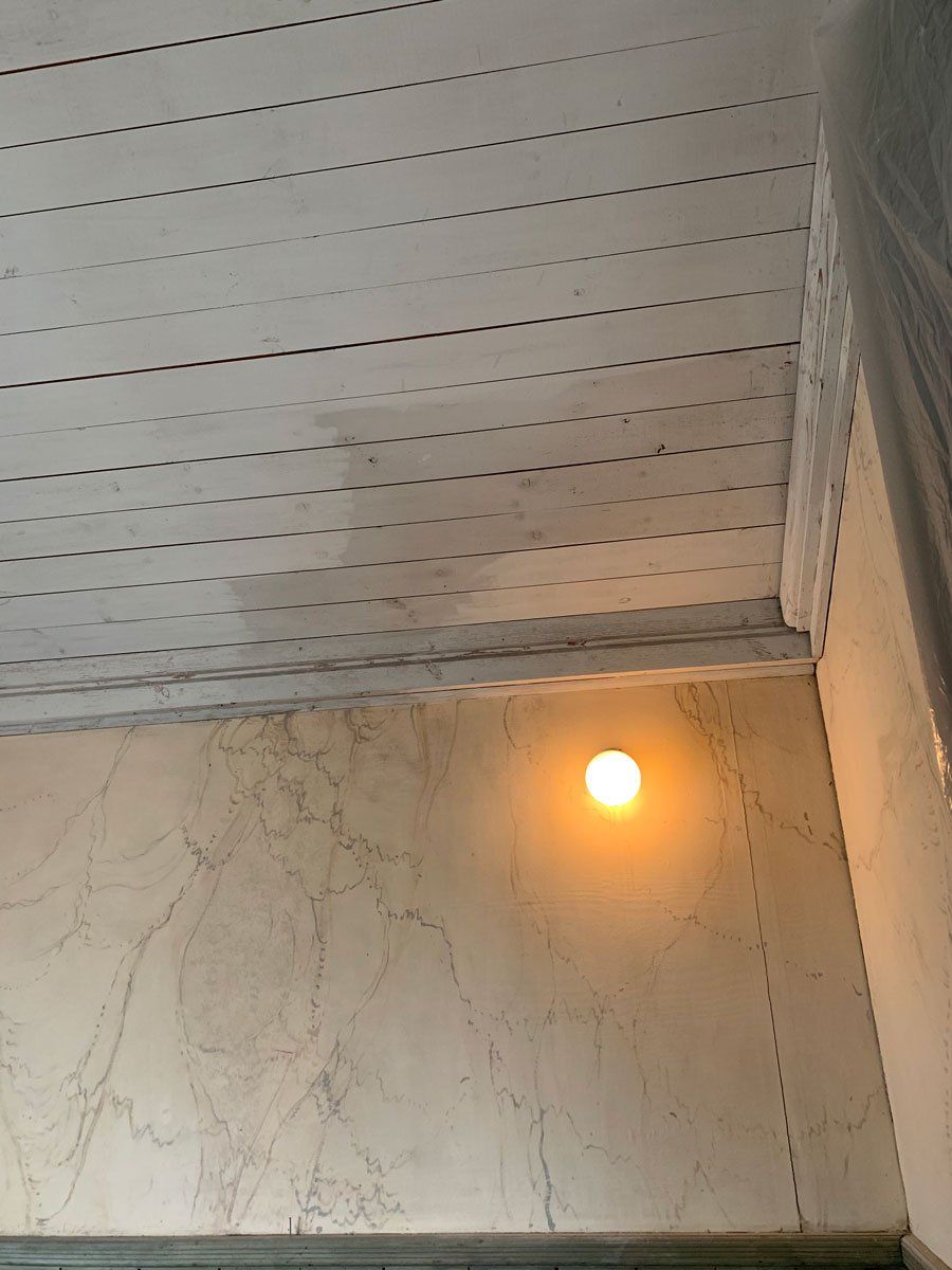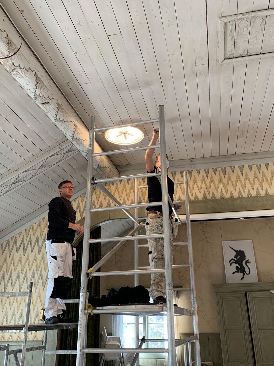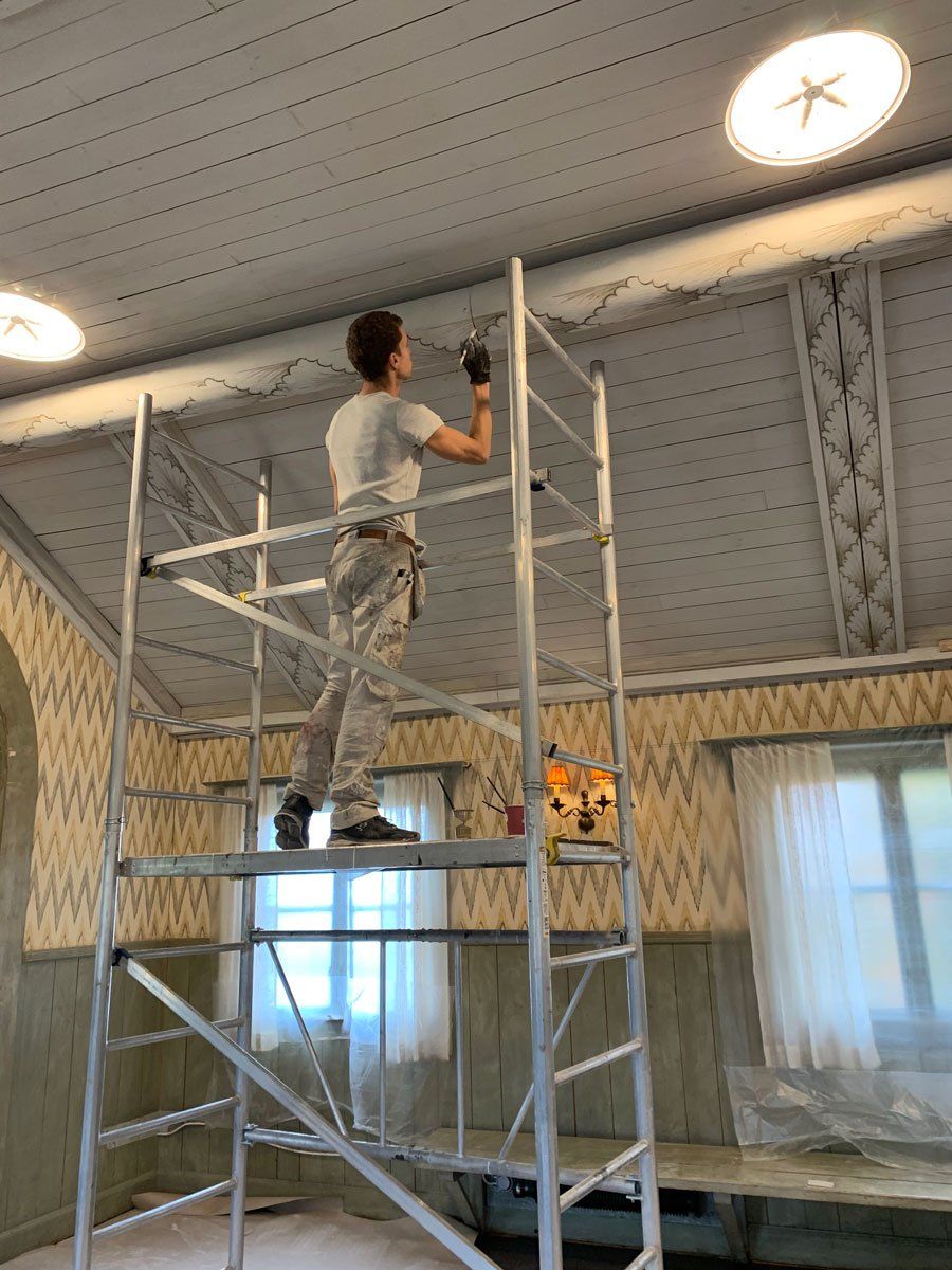 - Renovering av de handmålade väggarna i stora salen som tvättas och alla skador lagas med ny färg.